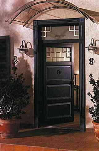 Der Eingangsbereich eines Einfamilienhauses mit Edelstahlleuchten, passend zum Vordach |